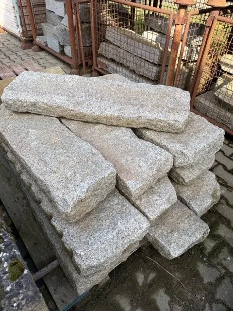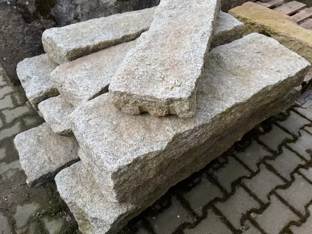 Sehr schön für eine Garteneinfassung oder als rustikale Trittstufen. Gewicht ab 100 kg. Ergänzend erhältlich 23 Stück Granitstücke L 30-86 x H 30 x T 11-16 cm.