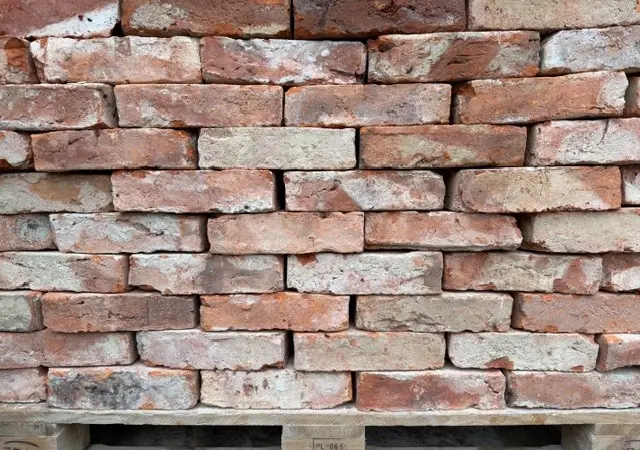 Original historische, recycelte Ziegel mit Gebrauchsspuren und Kalkmörteloptik, baufertig gereinigt. Verkauf lagenweise.